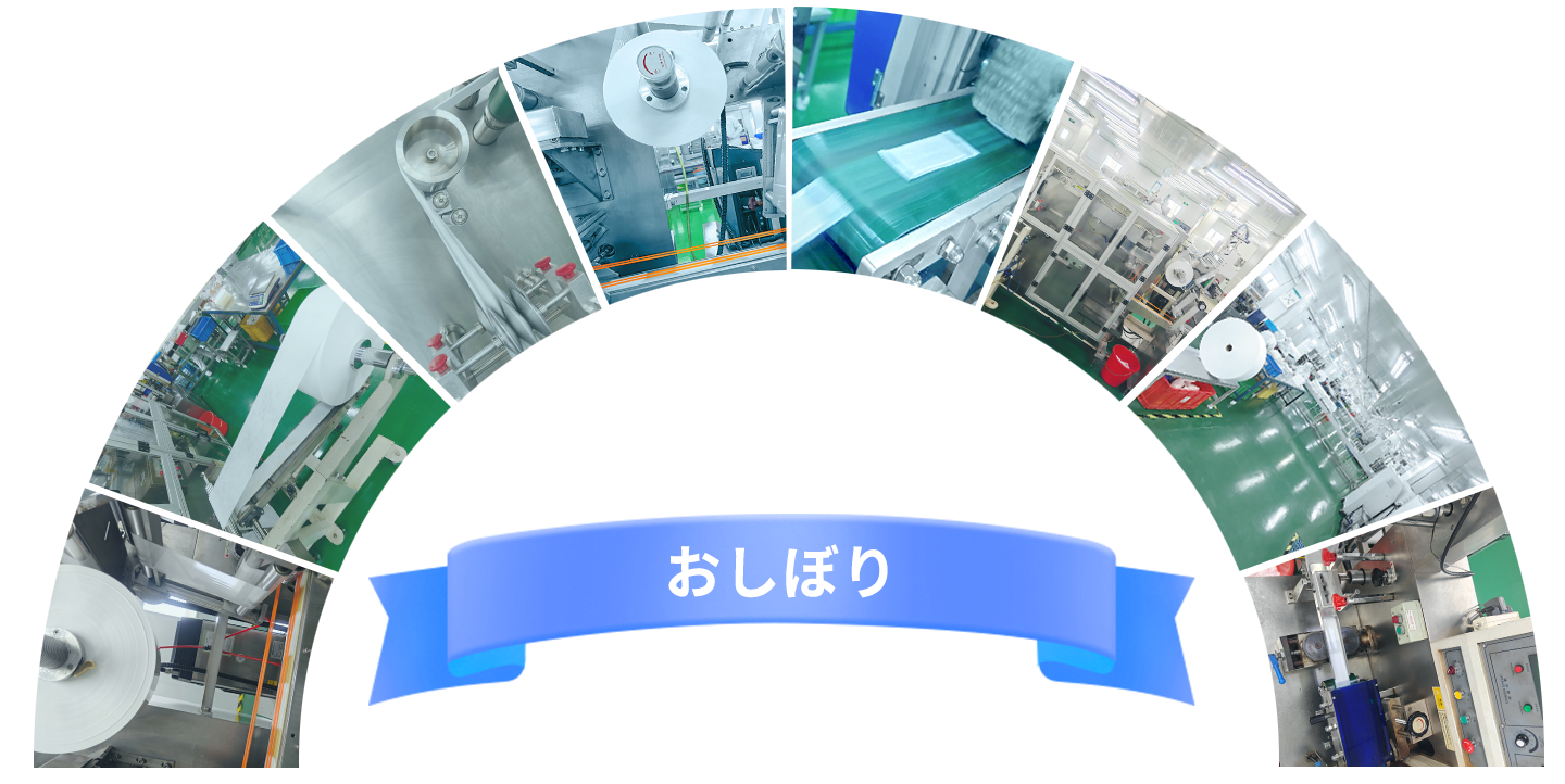 當(dāng)社のおしぼりは無地とメッシュタイプのスパンレース不織布です?,F(xiàn)在、當(dāng)社は中國國內(nèi)で一番大きな生産ラインを持っていますが、平型のおしぼり機(jī) 27臺(tái)と丸型のおしぼり機(jī) 2臺(tái)があって、生産ラインで黒點(diǎn)検査システムを使用していて、月に1億枚を生産できます。當(dāng)社の製品は日本の化粧品品質(zhì)要求と安全性検査に合格しています。主要な取り引き先はコンビニFamily MartとLAWSONです。